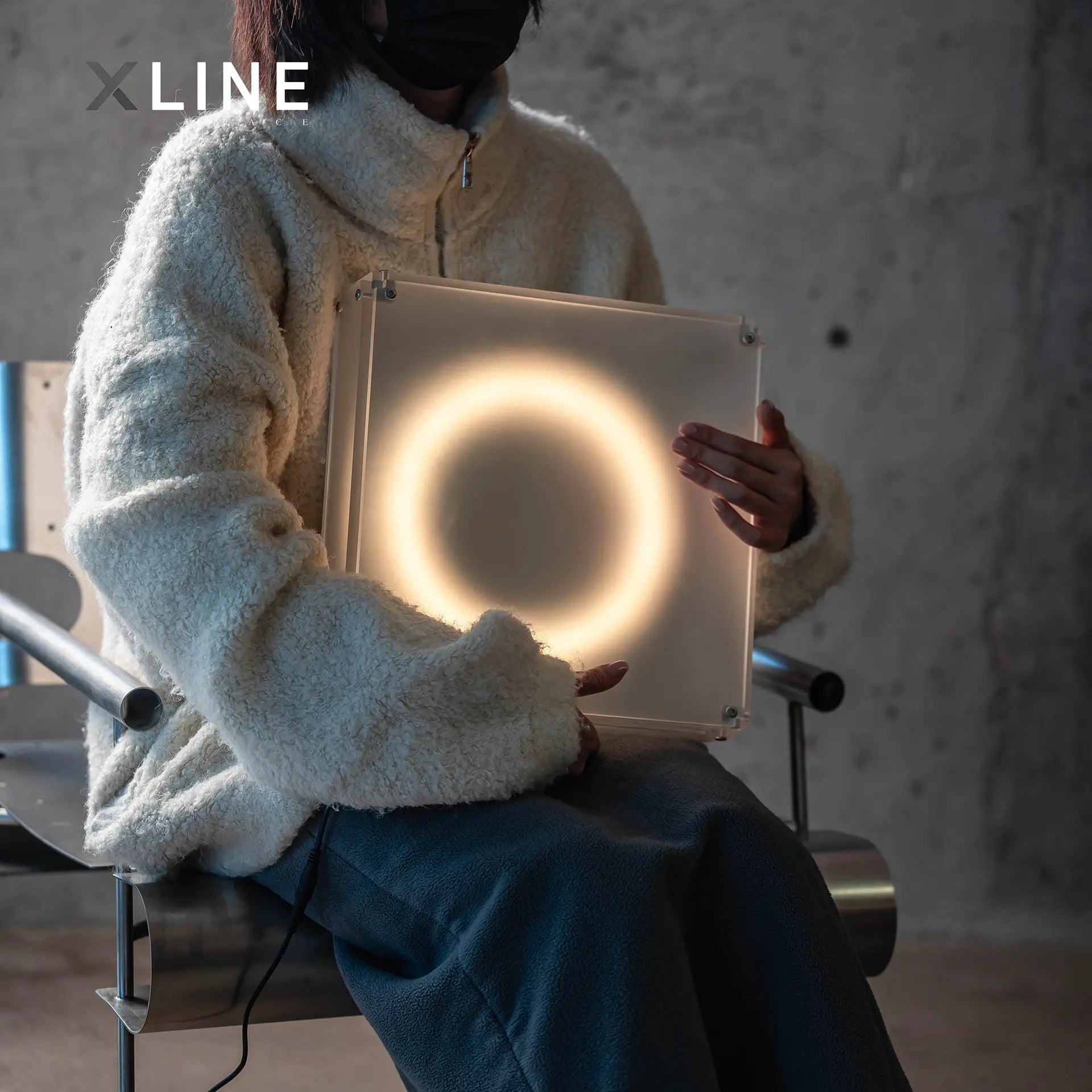 Neon Acrylic LED Ring Light Panel – Modern Mood Lamp blends neon‑style ambiance with minimalist design. Its slim frosted acrylic diffuser and sturdy aluminum frame deliver a smooth, dimmable glow in red or warm yellow.