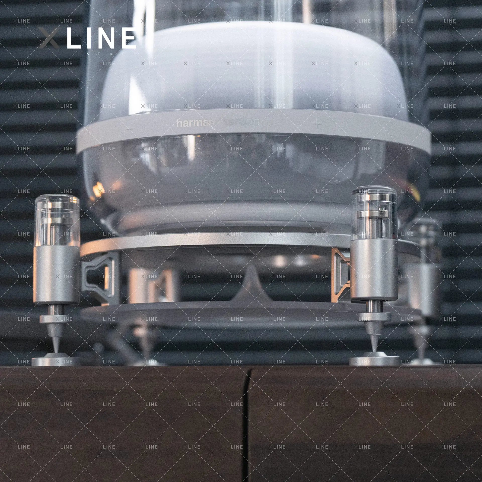Place to float — the stand visually rises and suspends your speaker with vibration reduction.